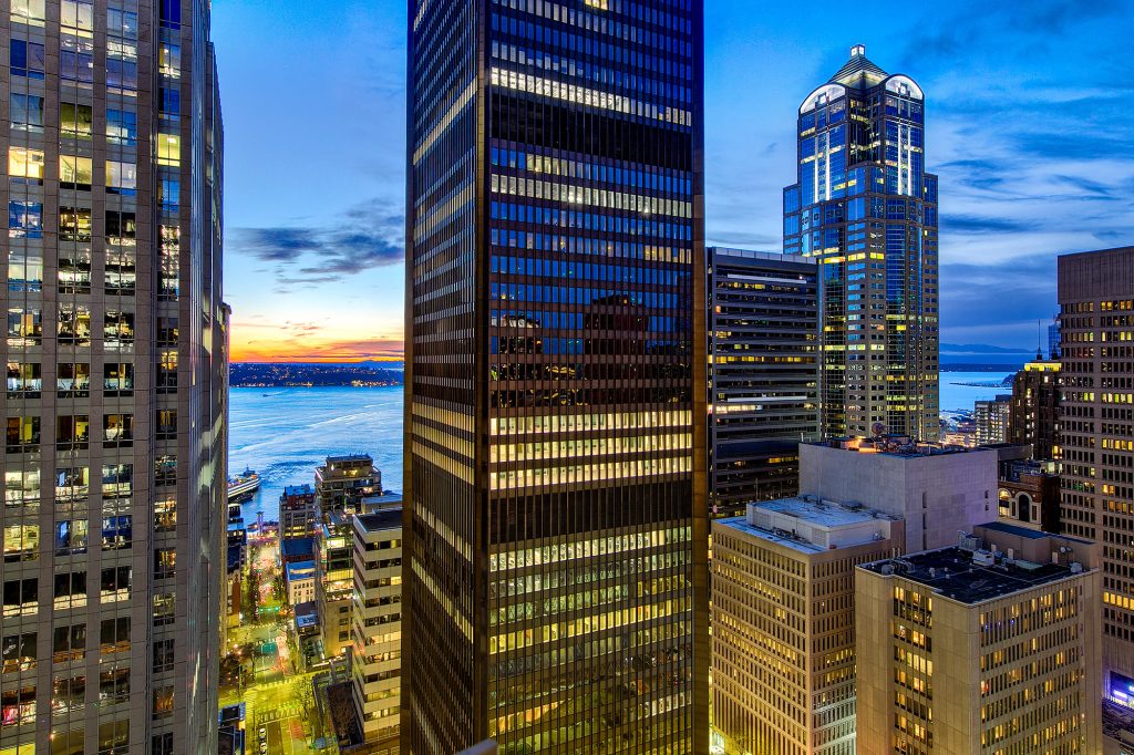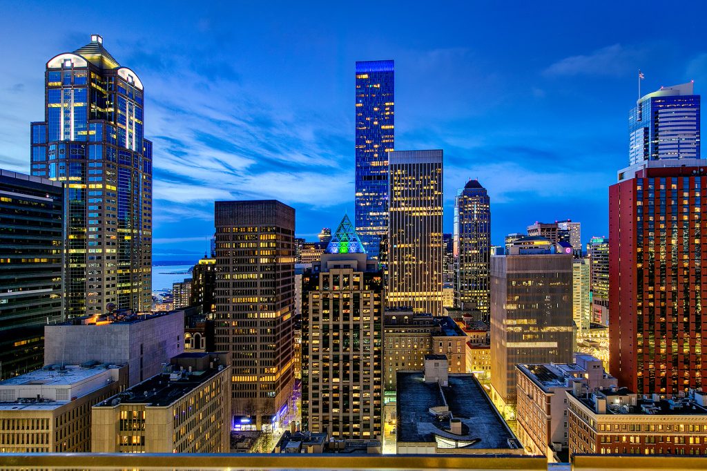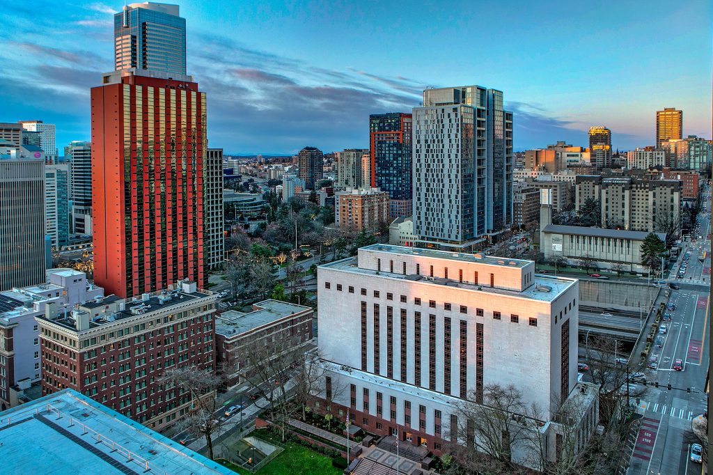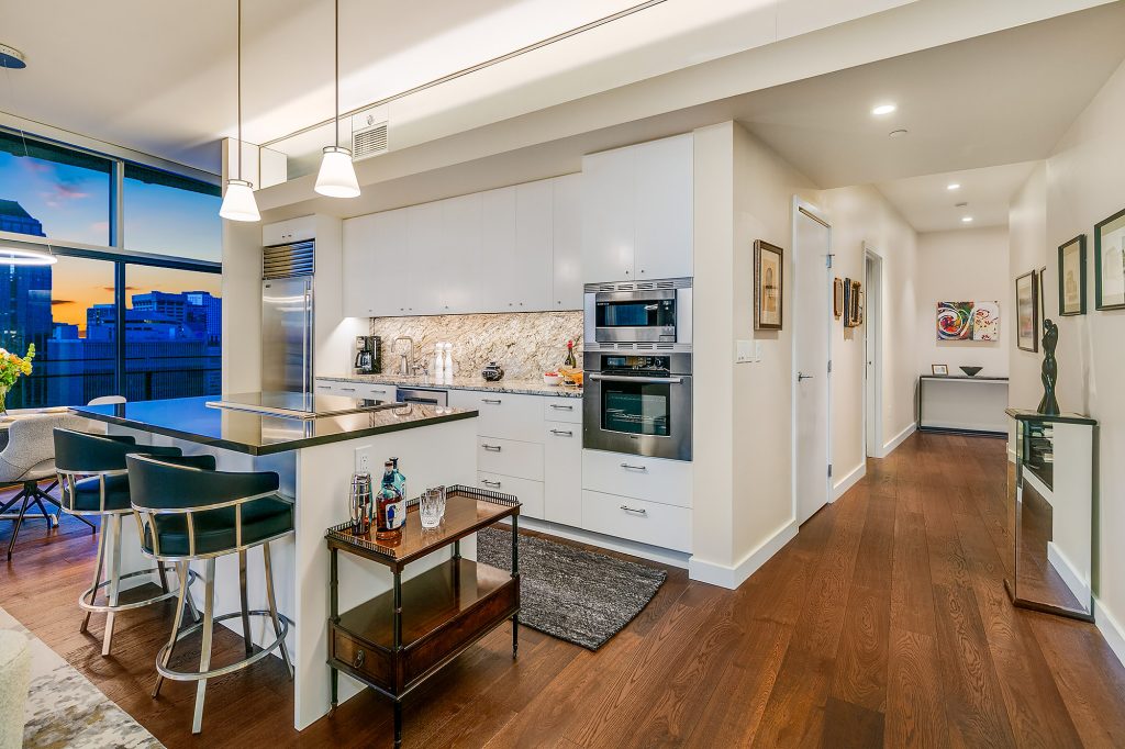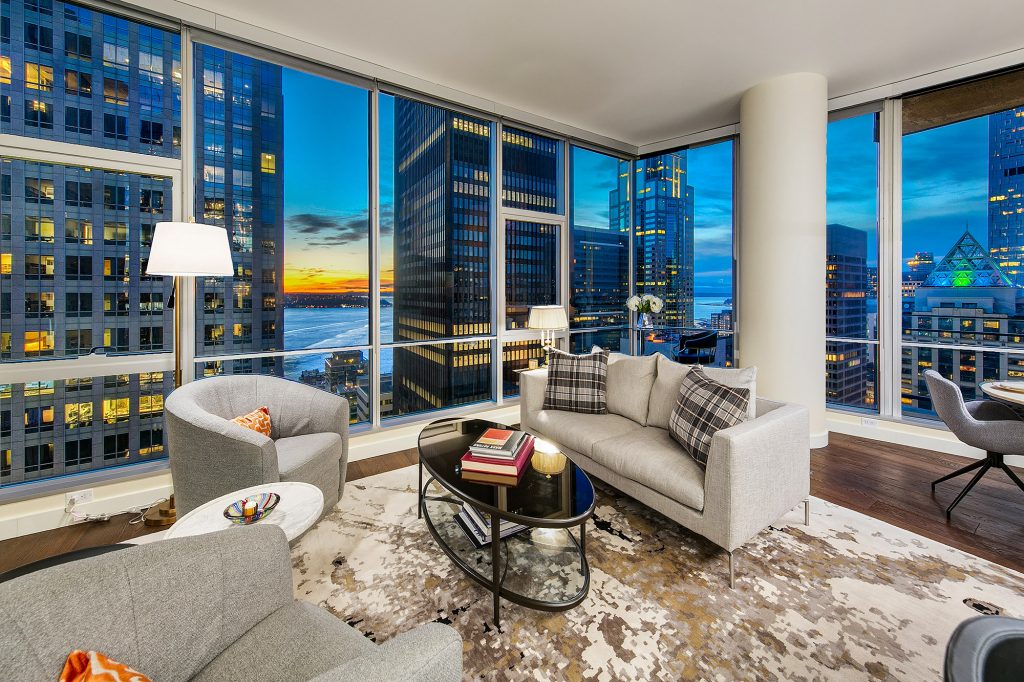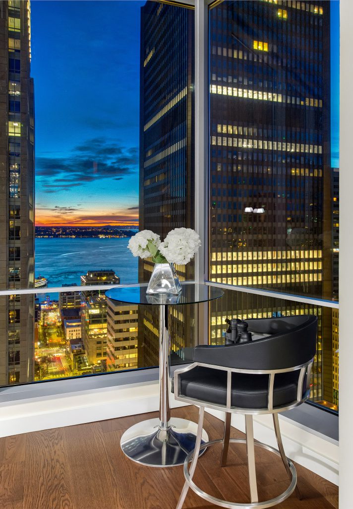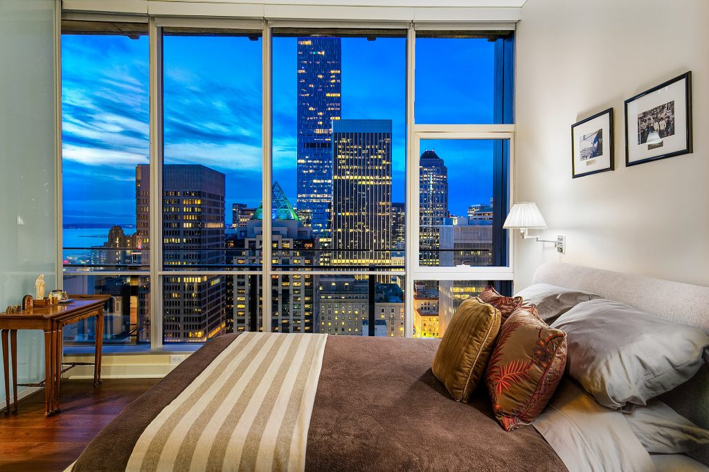 Penthouse Style luxury from this 23rd floor NW corner Jewel box! Near 1250 sqft -1bd plus large den. Soaring 11 foot floor to ceiling windows wrap this private sub penthouse home. Dream remodel, enjoy over 100k of designer upgrades, new wide plank floors, cook with a view-custom island designed with new wolf induction cook top, discreet pop up fan & sleek beverage center. Top of the line appliances, subzero, new LED lighting in kitchen above & below cabinets new designer lighting in dining area, new kitchen granite, sink & faucet, new Bosh dishwasher. Home has A/C . World class building, 24story, 126 homes, only 6 per floor, LEED Gold, steel & concrete. 5star location, mins to stadiums, I5, light rail, hospitals, court house. 1 parking- 1 storage. Be sure to visit 2nd floor amenities, owners lounge with roof deck, guest suite, fitness center & pet relief. Great HOA with healthy reserves! No rent cap.