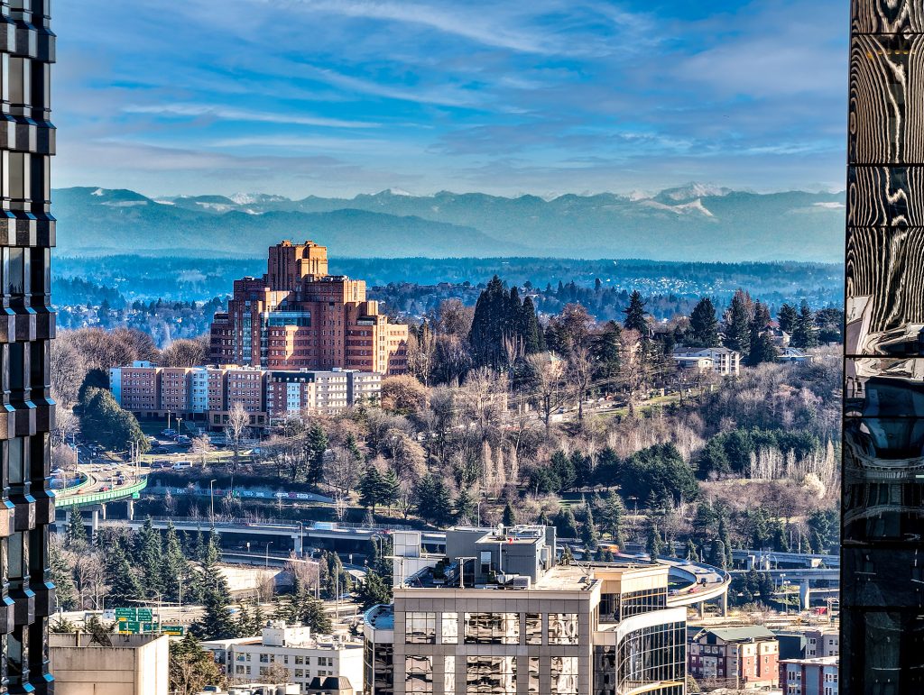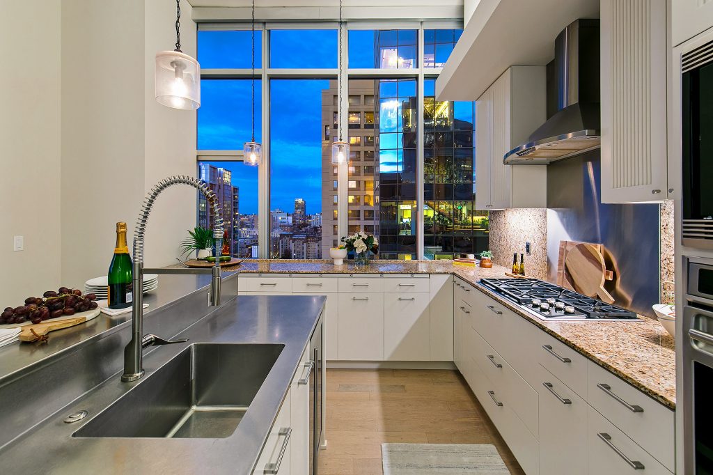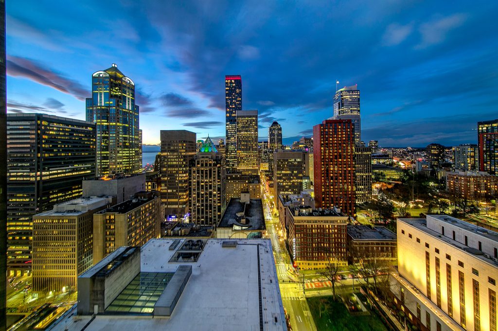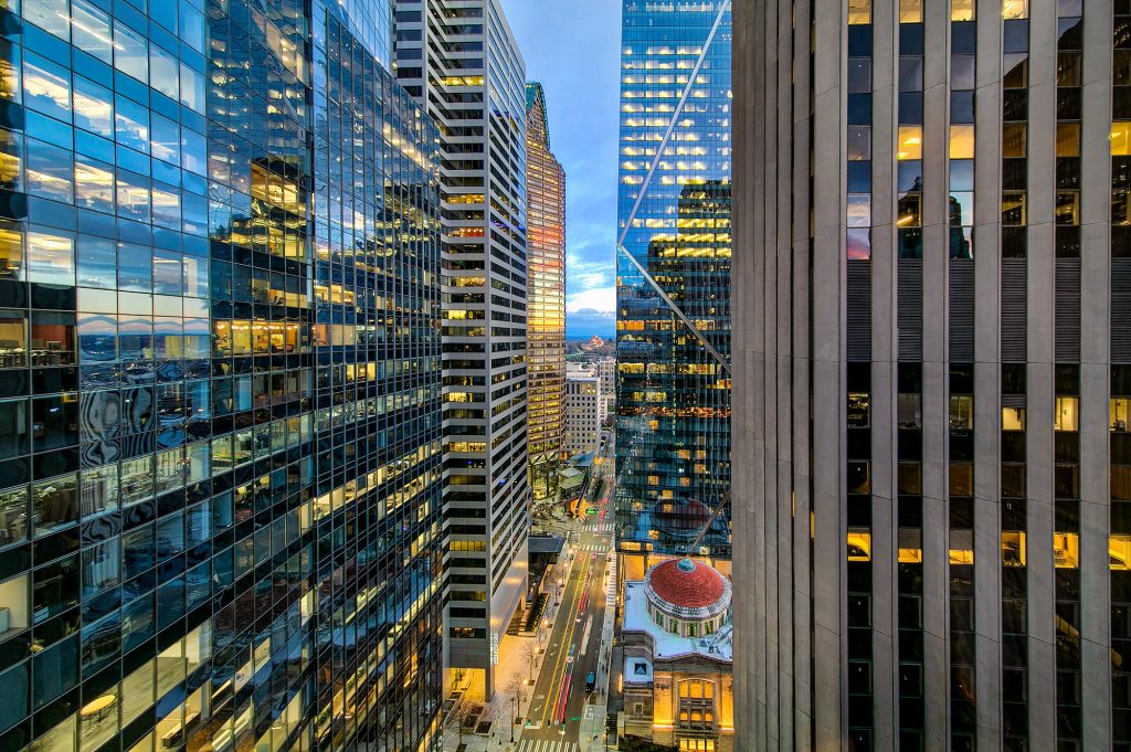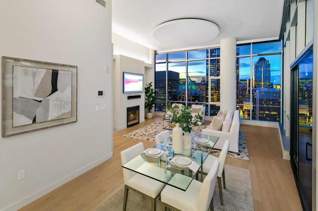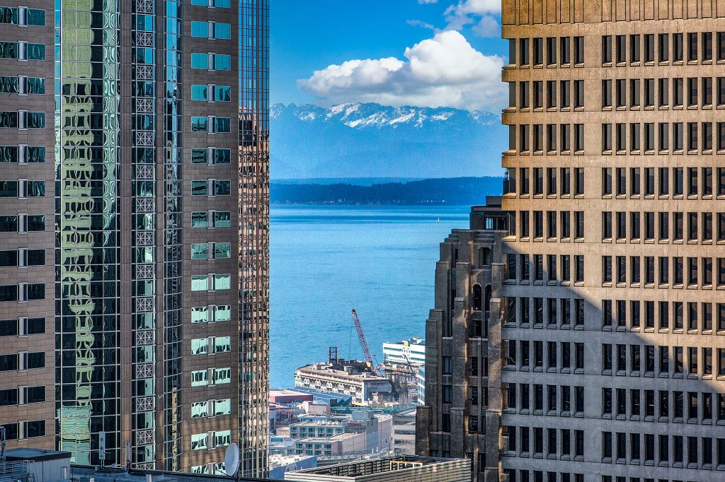 PENTHOUSE PERFECTION Rare 3 Bedroom, 2.5 Bath Corner Residence. A stunning jewel box in the sky, this oversized corner penthouse showcases soaring 12 foot walls of glass & panoramic views of Seattle's iconic skyline. Designed for exceptional entertaining, the grand open floor plan blends spaciousness with refined elegance, offering breathtaking views from every angle. Arrive home in style, luxurious marble foyer with ample space to showcase your favorite art collections. Gourmet kitchen is a dream for the budding chef, featuring gas cooking, top-tier appliances, solid wood cabinetry, abundant storage, and a large walk-in pantry. Beautiful wide-plank flooring flows seamlessly throughout the home. Sophisticated finishes found in every room. Dramatic Ramplause 12 foot glass doors enhance a sleek private touch to bedroom / home office spaces. Wake each morning to glorious sunrises and unwind to magical sunsets. The private primary suite is a true retreat, complete with floor-to-ceiling windows, an oversized walk-in closet, deep soaking tub, double vanity, frameless oversized shower & a closet dedicated for additional storage. This modern smart home features include automated lutron, wireless A/V integration, & a smart TV w/rotating art display. 5th&Madison is located in the heart of Seattle's financial dist, enjoy premier restaurants, renowned architecture just outside your door. EZ access to I-5, Bainbridge Ferry, hospitals, stadium events, Seahawk parades! 2pk, 2storage.